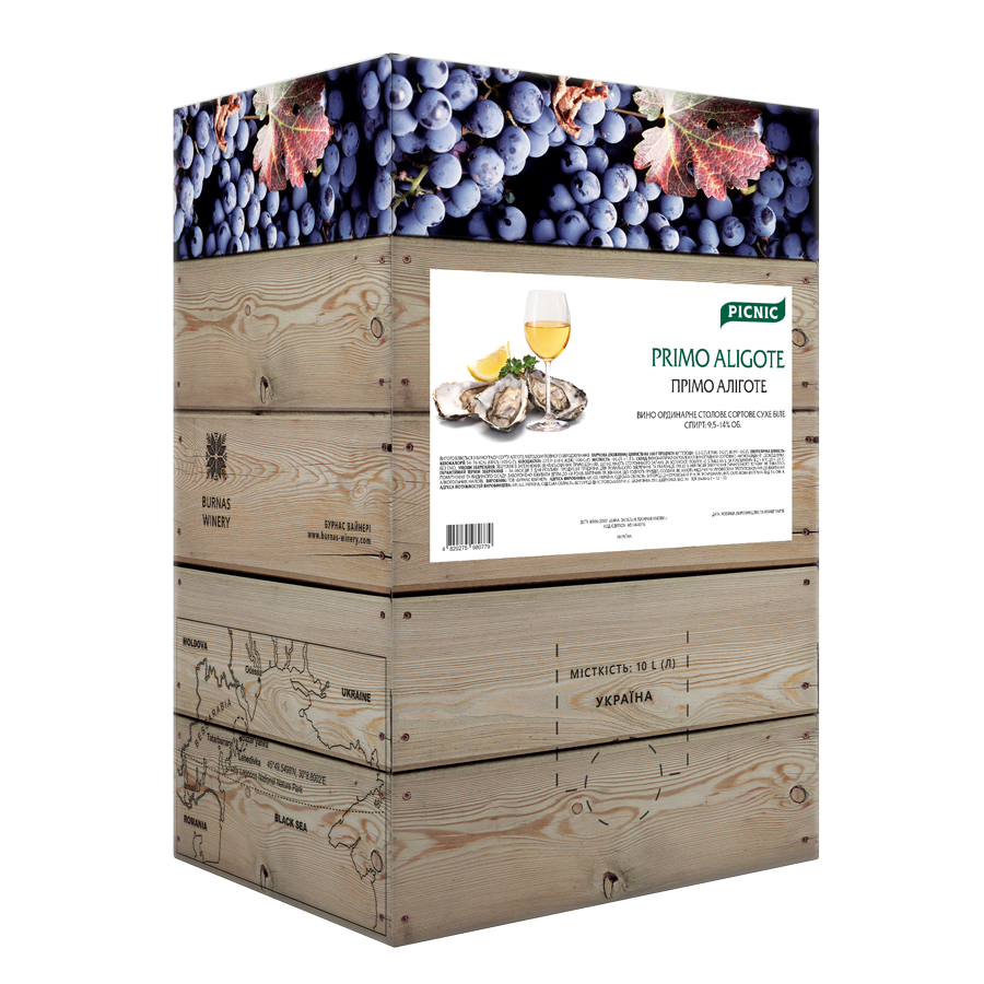 Вино ординарне столове сортове сухе біле. Приємне свіже молоде вино від BURNAS WINERY. Для щоденного споживання і гарного настрою! Сухе сортове Прімо Аліготе – легке, дуже квіткове і не дуже складне, дає відчути свіжість виноградної лози з першим ковтком. Прімо Аліготе відмінно втамовує спрагу, може бути незамінним атрибутом літнього пікніка.